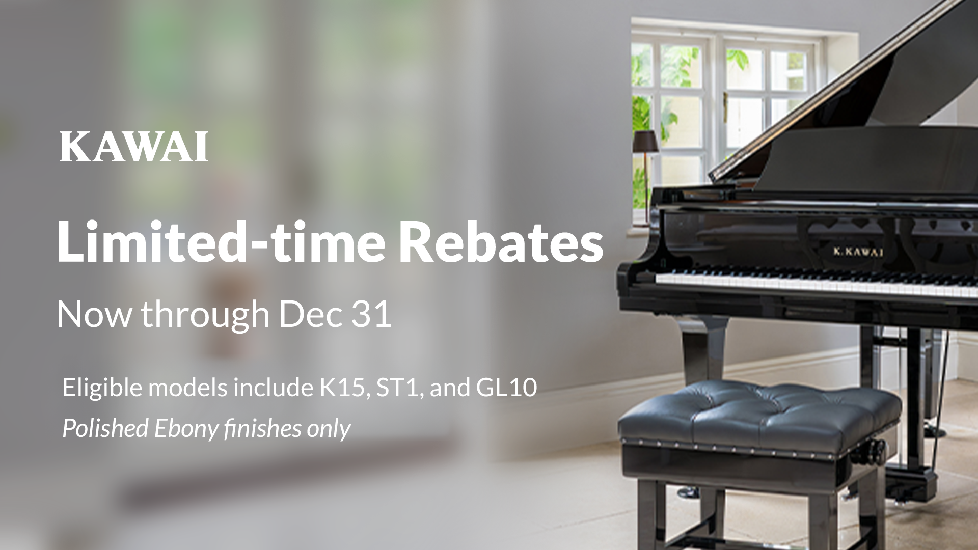 Take advantage of our limited-time financing promotion and bring home the piano you’ve been dreaming of. The sale runs from August 1st through December 31st, 2025, offering flexible payment options that make owning a new Kawai or Shigeru Kawai piano more accessible than ever.